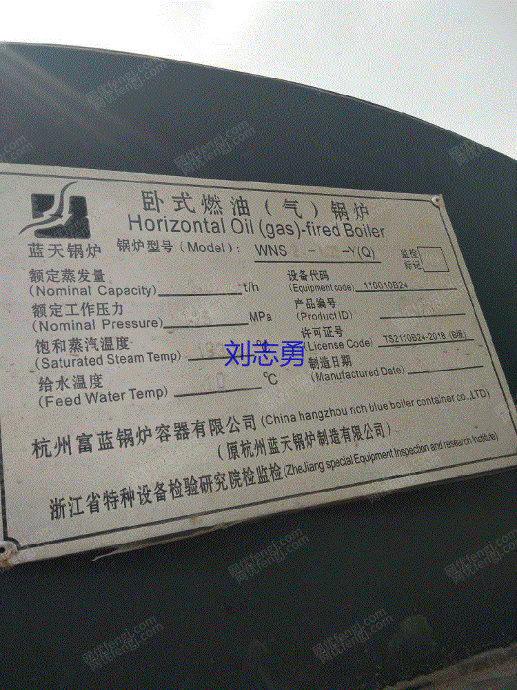 现货库存二手1吨2吨燃气蒸汽锅炉,2016年1月出厂,杭州富蓝锅炉。