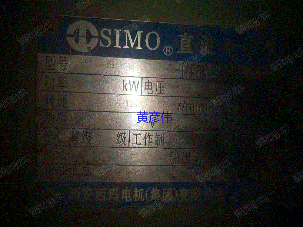 出售二手直流电机Z560-3B,730KW,660V,转速508-1200转,西安西玛直流电机一台8成新。13931997990, 联系人: 黄彦伟