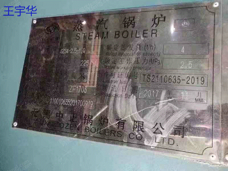 现货供应一台9成新4吨二手燃气锅炉,江苏无锡中正锅炉产,15226626678, 联系人: 王宇华