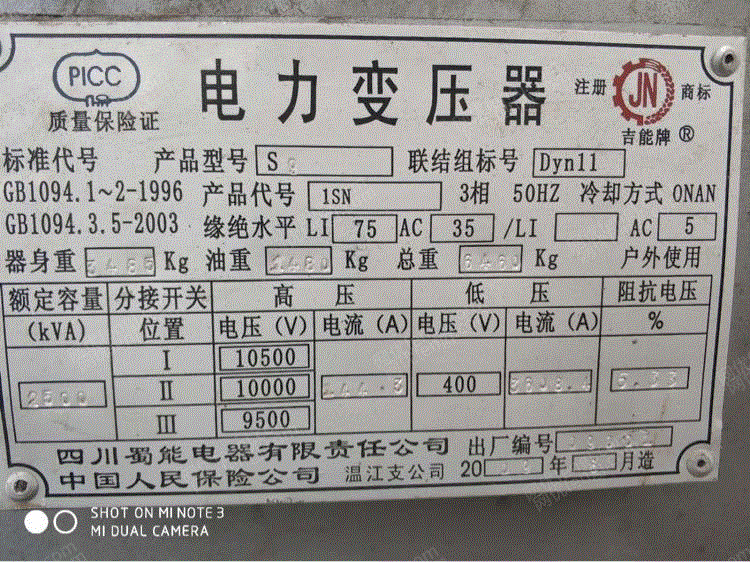出售二手变压器10000/400铜芯