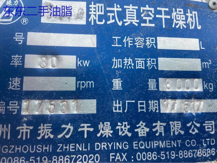 出售二手不锈钢耙式干燥机,5立方,17年设备,里面干净无料,有需要的联系电话??18364766220
