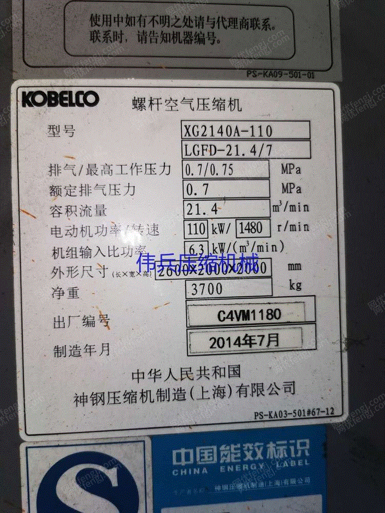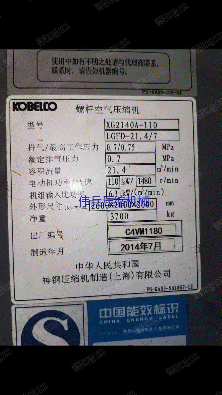 市场现货KOBELCO神钢螺杆空气压缩机XG2140A-110