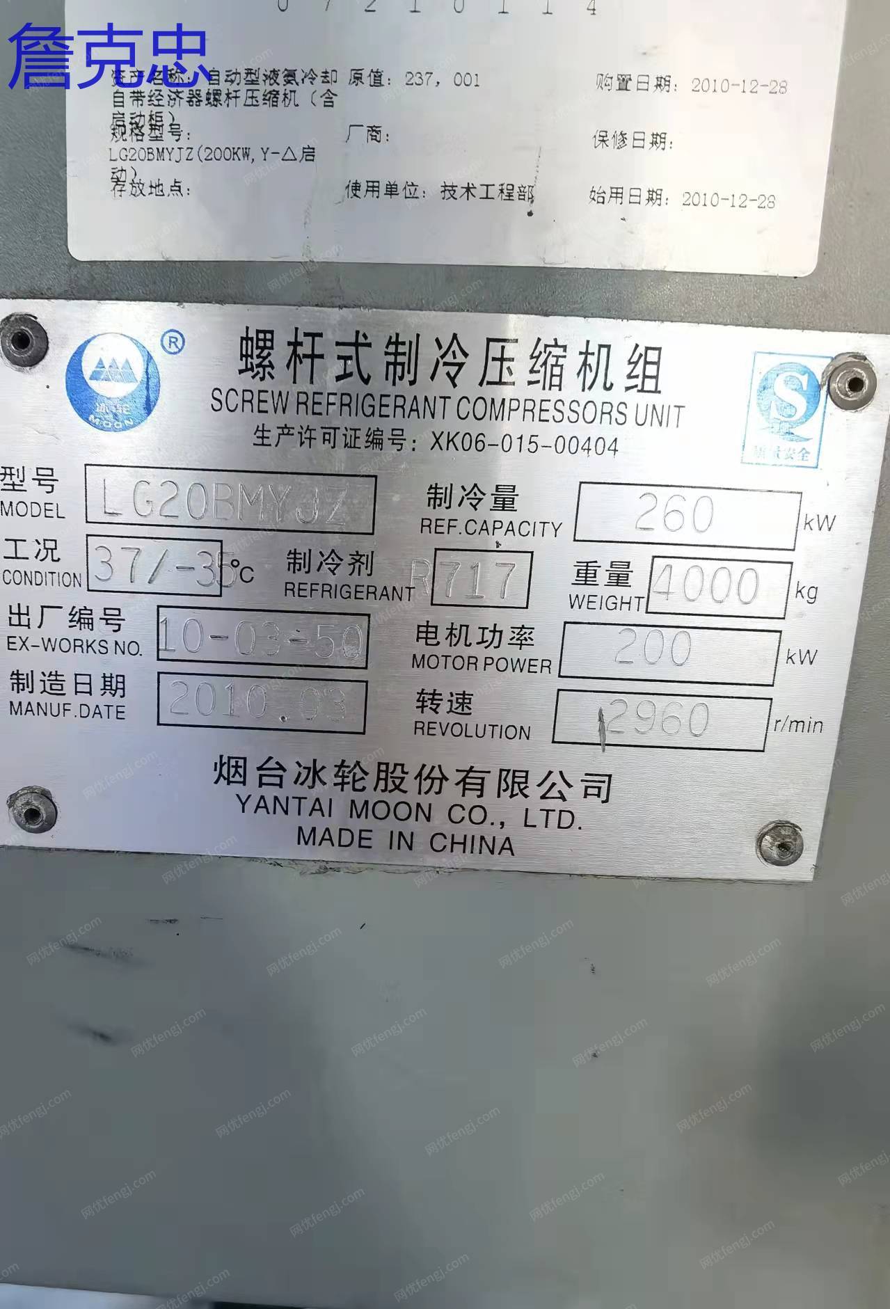 出售20螺杆压缩机,二手制冷机组 冷库设备