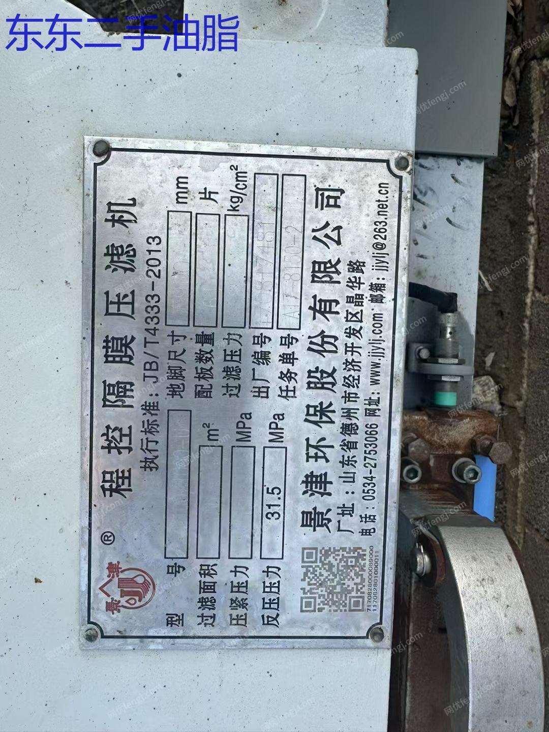 转让100平方二手隔膜压滤机,设备几乎全新,污泥处理设备